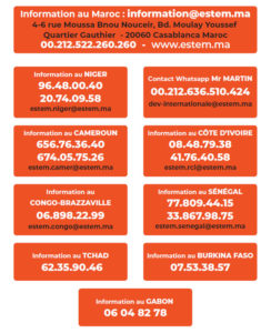 - Soit par voie postale à notre adresse : ESTEM, 4-6 rue Moussa Bnou Nouceir, Bd Moulay Youssef Quartier Gauthier-20060 Casablanca-Maroc.